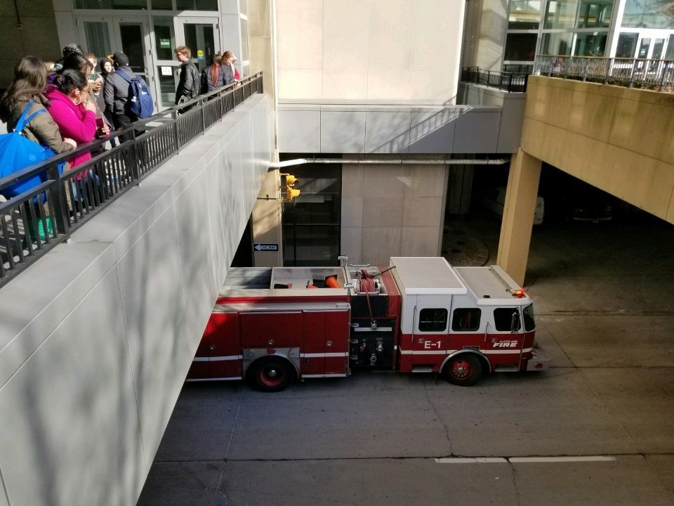 “No one was there to tell us ‘Oh, you can go back in now.’ I kind of just followed everyone else back into the building,” Adams said. “When I got up to the fourth floor everything smelled like smoke and burned paper.”