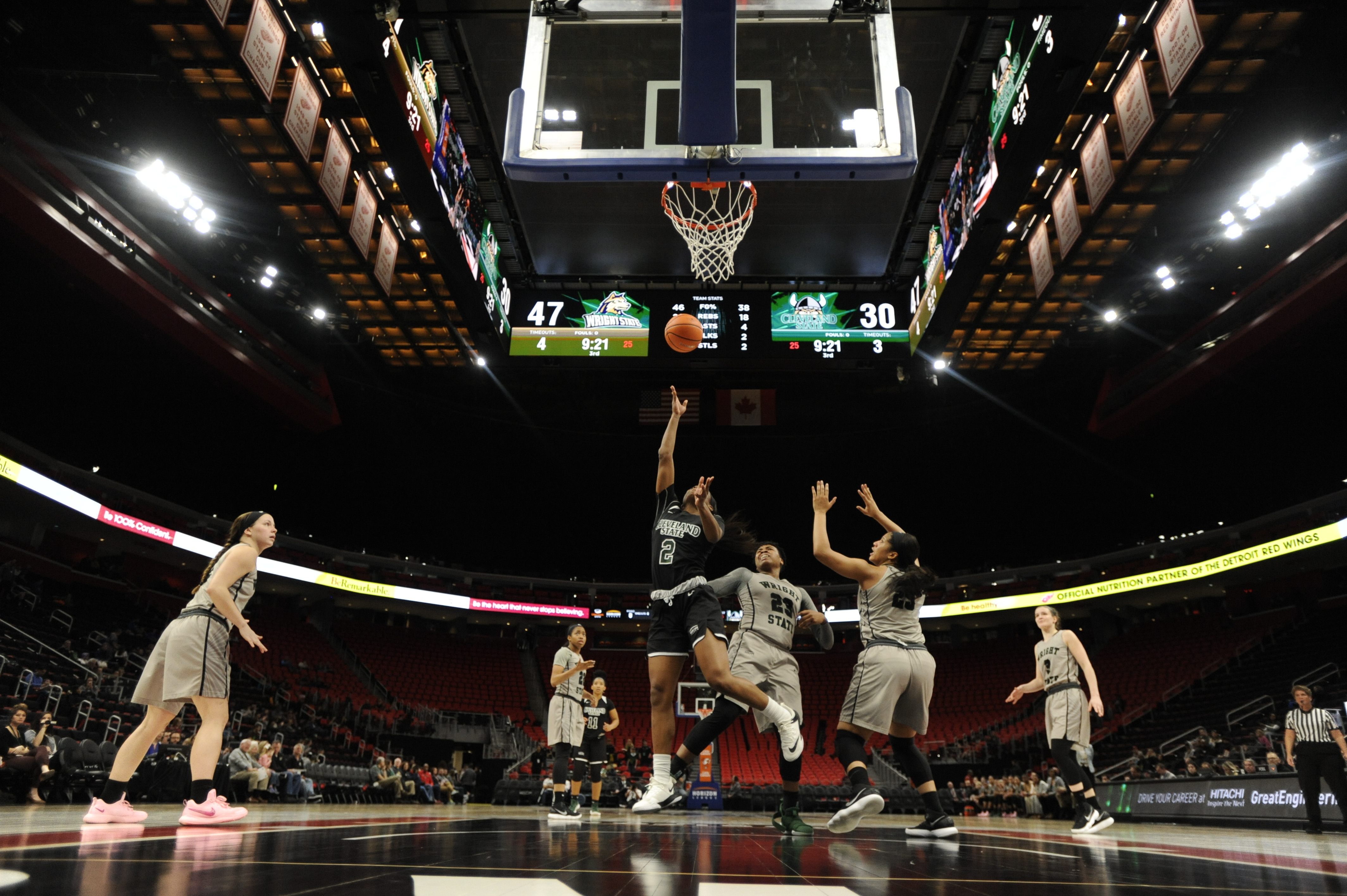 The team traveled to Little Caesars Arena in Detroit, Michigan on March 4 to face off against Wright State. The Vikings had played against the Raiders twice in the regular season, defeating them both times.