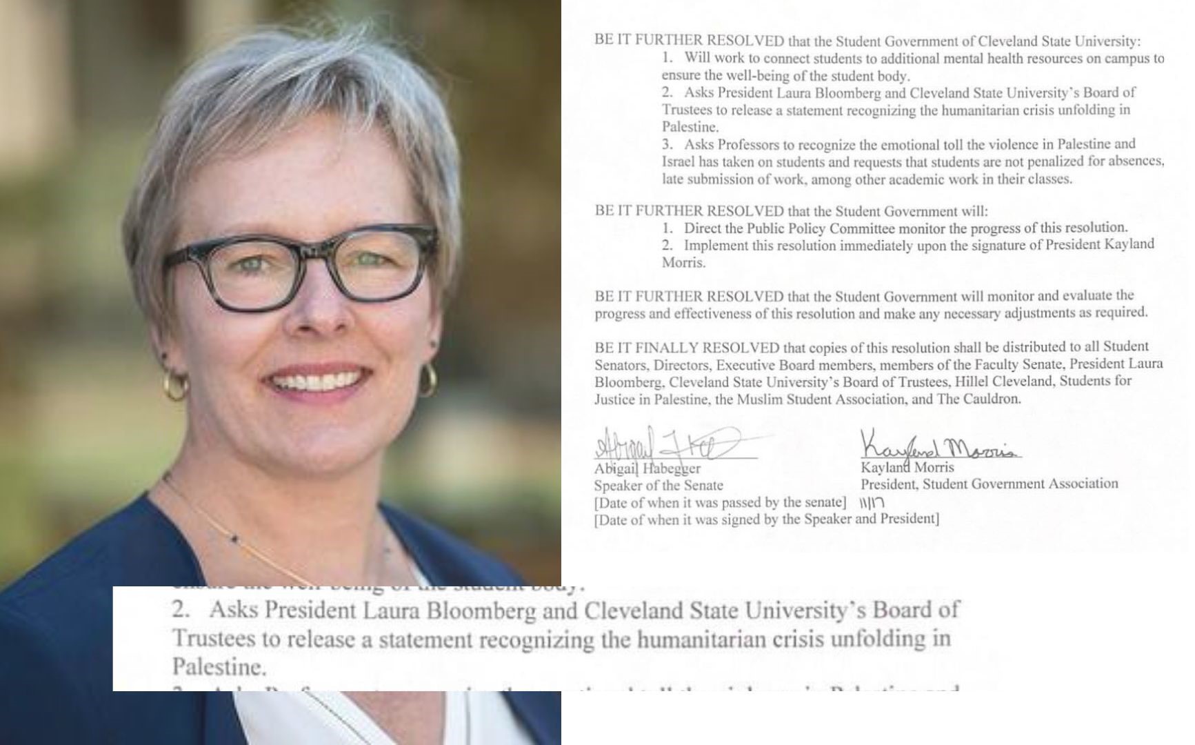 What Morris can say for sure is that Bloomberg “had good things to say regarding students being active in producing these resolutions and expressed empathy for the world events that are impacting the campus community.”